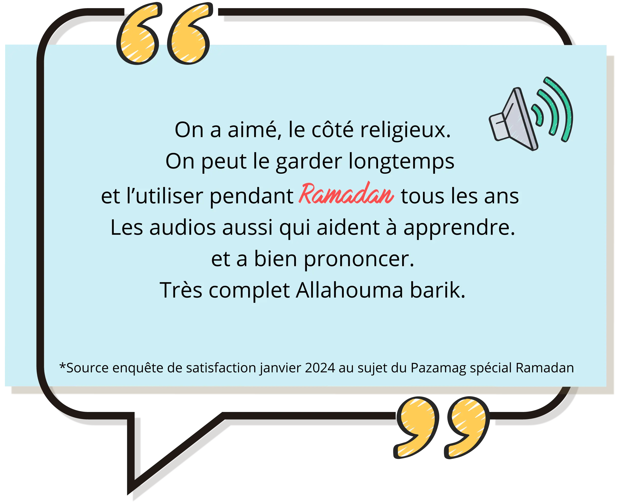 Le mois de Ramadan est une période bénie durant laquelle chaque musulman est enjoint à méditer et à adopter un meilleur comportement. Mais au milieu de toute cette euphorie, votre enfant de 3 ans et plus est sûrement curieux des actes d’adoration et des particularités de ce mois. Et si vous pouviez l’impliquer au quotidien et lui expliquer le Ramadan de façon ludique ? Pour satisfaire les envies des plus jeunes croyants de notre Oumma, Pazapa Éditions vous propose Mon Premier Paza’Mag hors série spécial Ramadan.