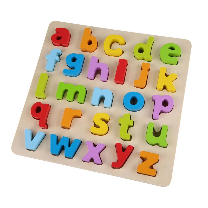 Découvrez un jeu éducatif unique qui aide les enfants à reconnaître les lettres de l’alphabet (en majuscules et minuscules) ainsi que les chiffres, tout en les plaçant correctement sur une planche en bois.