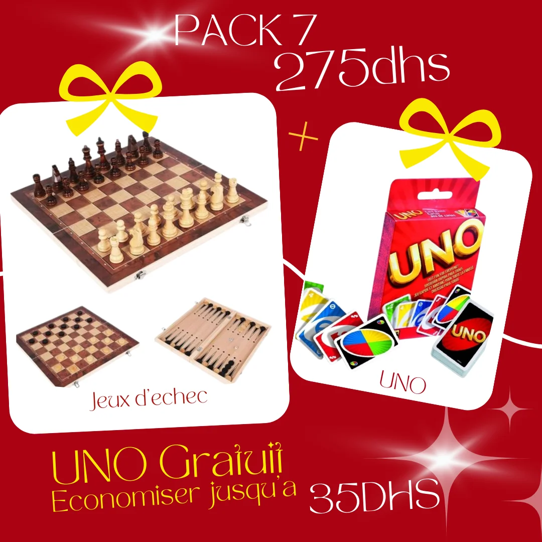 Pack 7 : 4 Jeux de Société : Jeux de Dames – Echecs – Backgammon – UNO