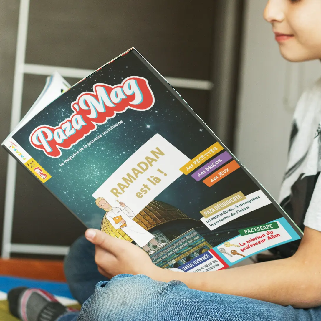 Encore une fois cette année, Allah سبحانه و تعالى nous offre l’opportunité de goûter aux bienfaits du Ramadan. À l’approche de ce mois béni, beaucoup de parents aimeraient pouvoir offrir à leurs jeunes enfants un programme d’apprentissage ludique et passionnant pour les aider à mieux comprendre et mettre en pratique le 4ème pilier de l’Islam. Avec le Paza’Mag Ramadan est là ! l’équipe de Pazapa Éditions vous offre le support idéal pour ancrer profondément l’amour d’Allah سبحانه و تعالى dans le coeur de votre petit musulman préféré. Au fil des pages, votre enfant est encouragé à multiplier les bonnes actions…
