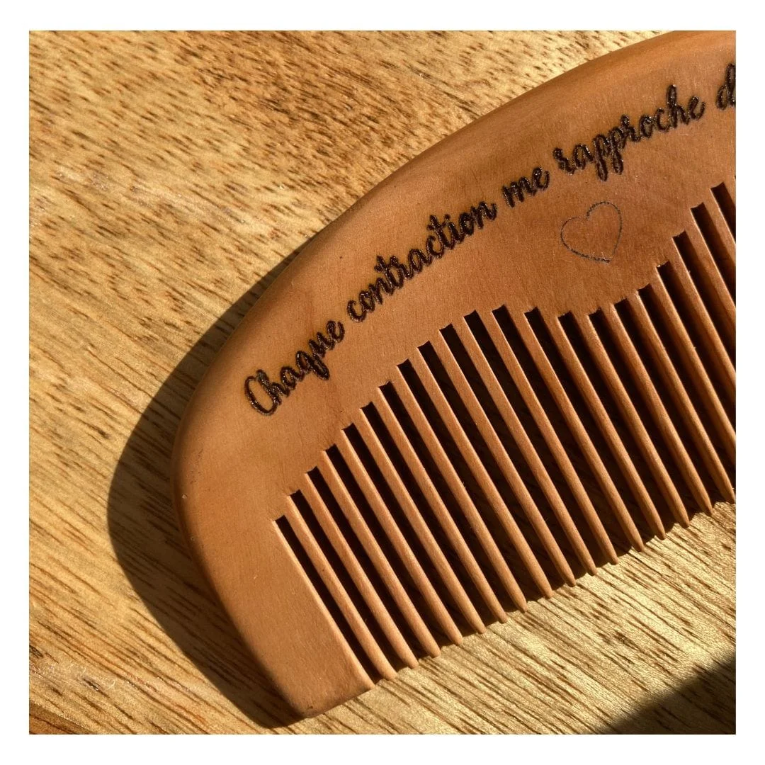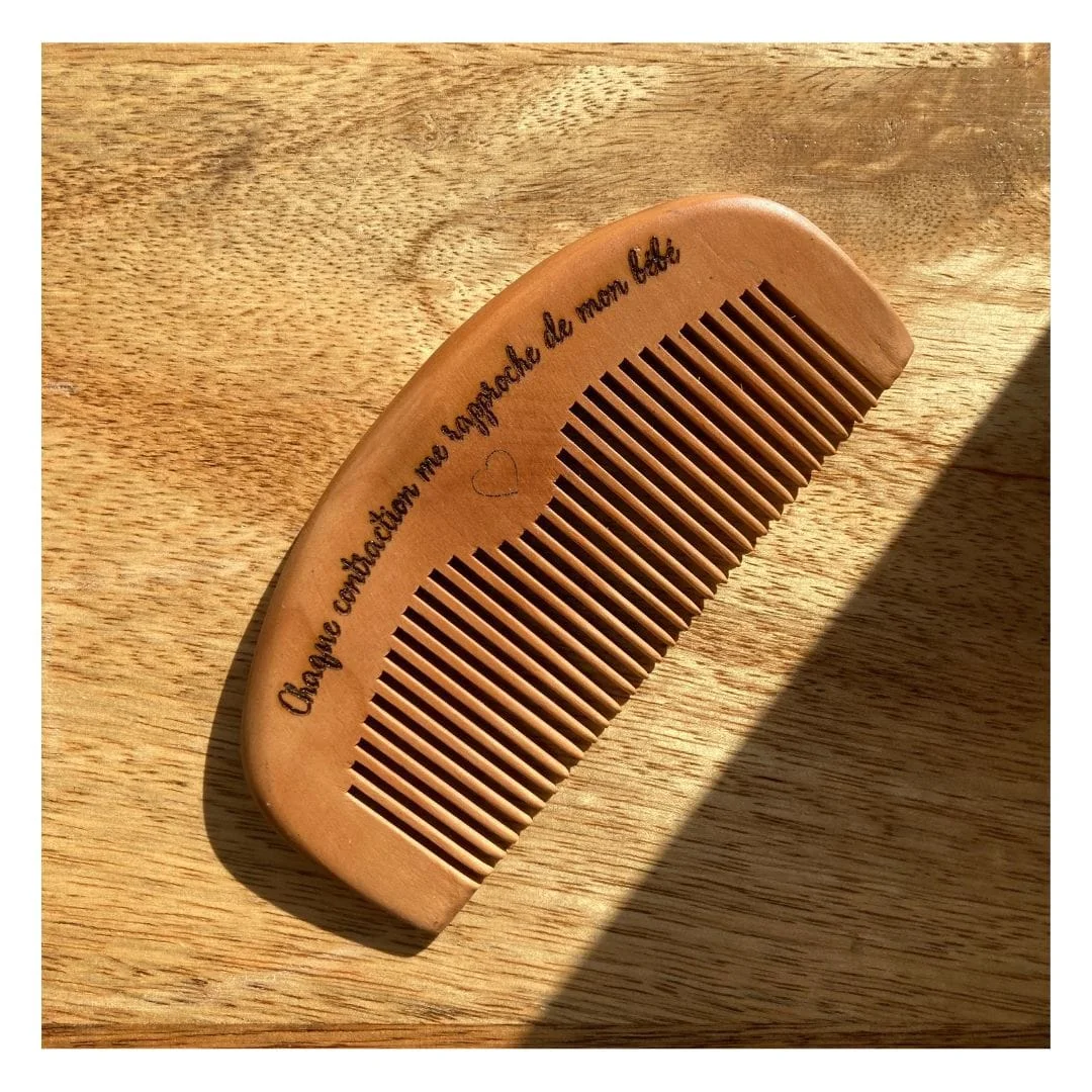 Peigne d’acupression pour l’accouchement en bois de poirier 10 x 5 cm gravé en Bourgogne avec amour