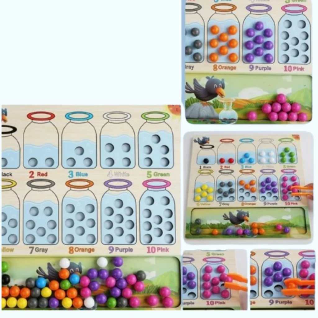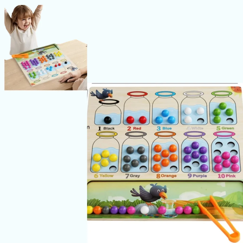 Description du jouet Le jeu Montessori de tri et de transvasement est une activité éducative inspirée par les principes de Maria Montessori, qui aide les enfants à développer des compétences essentielles. Grâce à l’utilisation de la pince, les enfants apprennent à trier des perles de différentes formes et couleurs, ce qui favorise non seulement leur […]