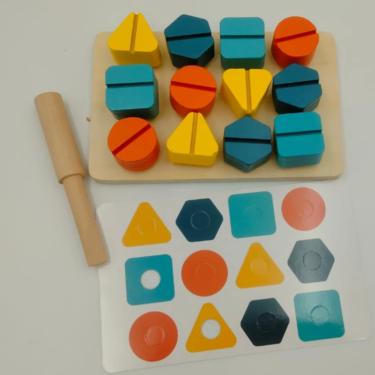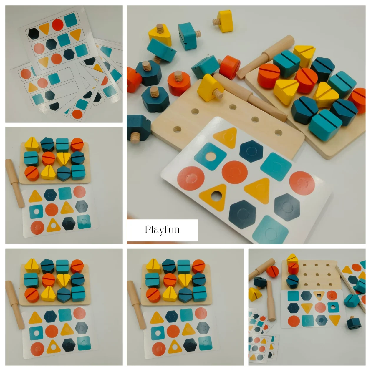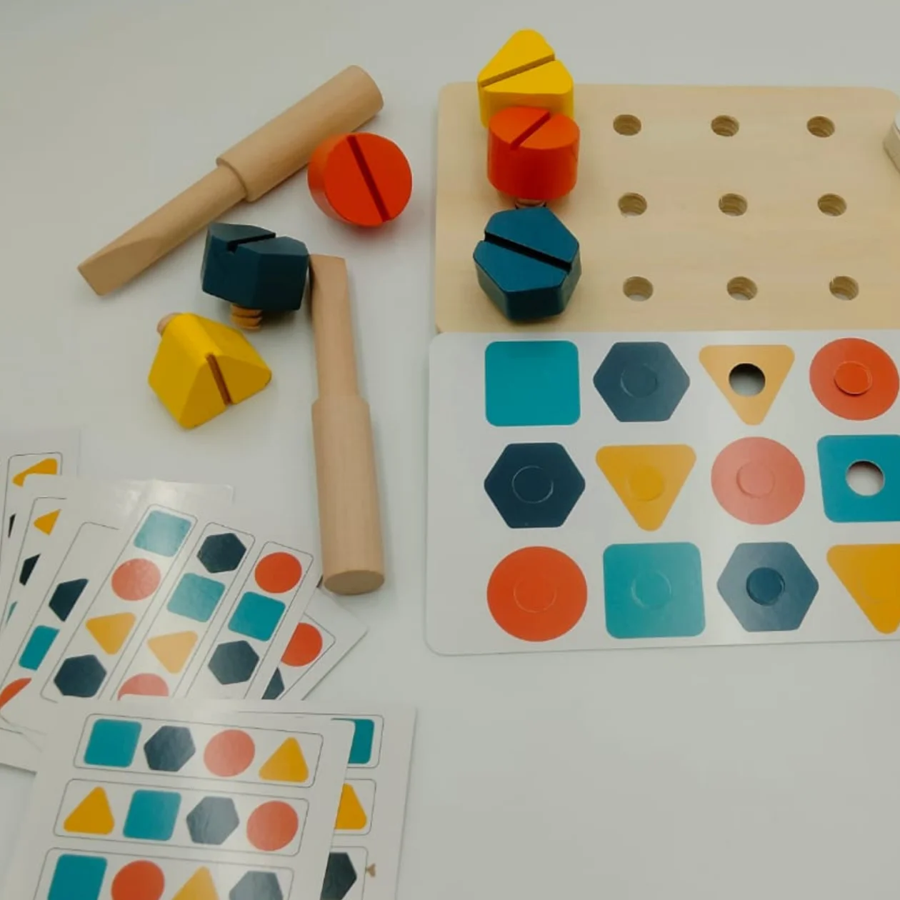 Cet ensemble comprend des vis et des écrous et des cartes d’activités qui peuvent être combinées entre elles et vous permettent de réaliser une grande variété d’exercices dans le domaine des mathématiques et de la logique . Les pointes ont des formes et des couleurs différentes et s’insèrent dans les trous des fiches d’activités, permettant ainsi de réaliser des séries et des motifs, trier par couleur ou forme, créer des dessins… Ce jouet est un cadeau qui fera le bonheur des enfants!
