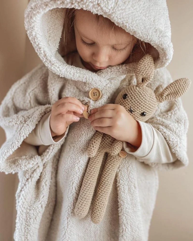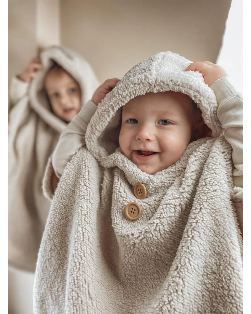 Sa matière douce et légère respecte la peau sensible des enfants. La capuche protège la tête, et les emmanchures avec boutons-pression permettent de créer des manches pour plus de confort et de liberté de mouvement.