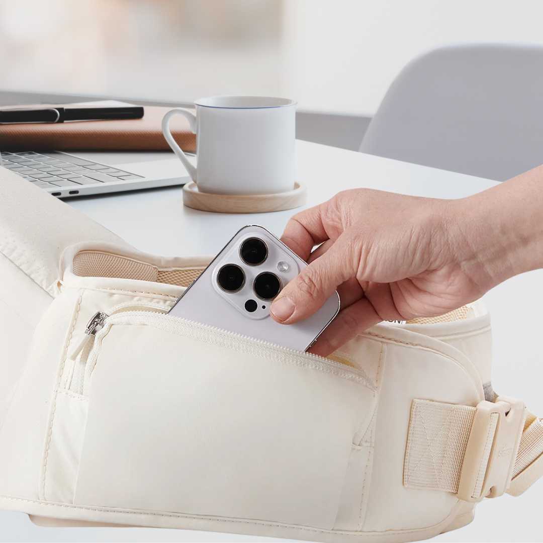 Idéal pour les arrêts en parc, les pauses goûter ou les files d’attente. Avant, il fallait porter ET transporter. Maintenant, un seul produit suffit.