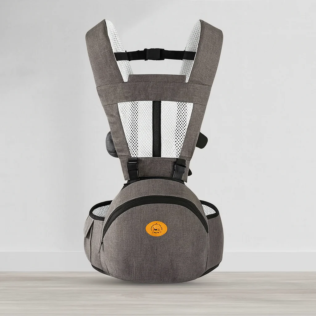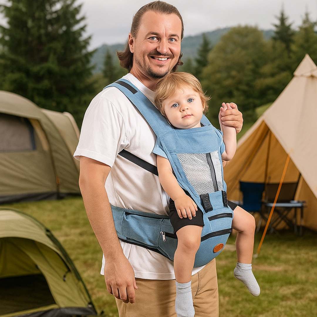 En se scindant en 2, le CarryAdvent ™ se transforme en ceinture porte bébé avec un tabouret pour faire asseoir ce cher petit.