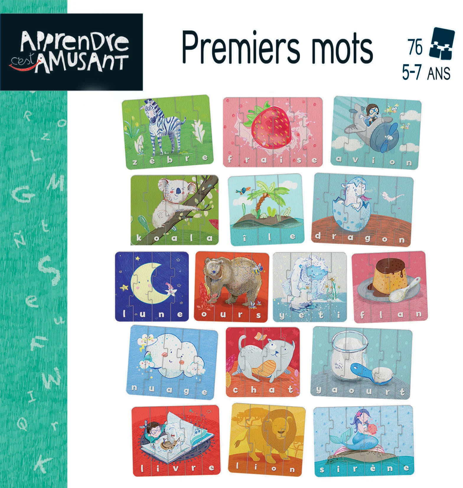 Avec ce jeu amusant les enfants pourront apprendre à écrire leurs premiers mots. En construisant les puzzles lettre après lettre, les plus petits découvriront l’image complète et son nom. Les enfants apprendront à identifier chaque lettre avec sa graphie.