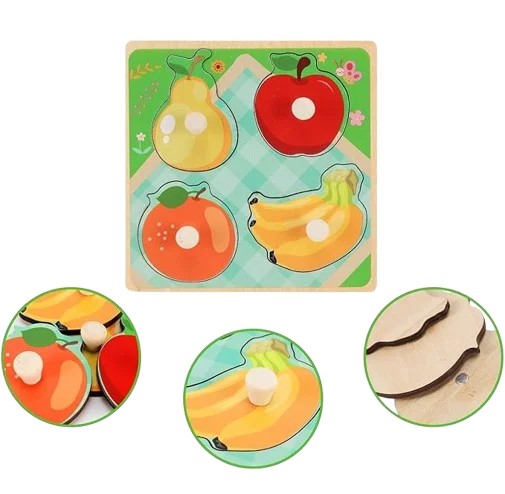 Ce puzzle à boutons en bois – Fruits est spécialement conçu pour les petites mains curieuses.