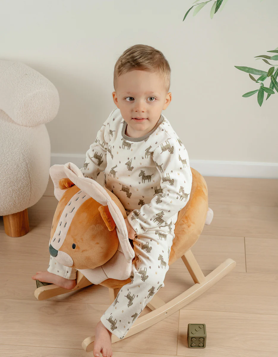 Pyjama 2 pièces en velours kaki avec broderie zèbre