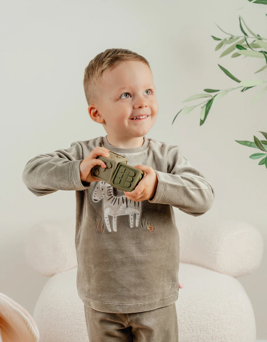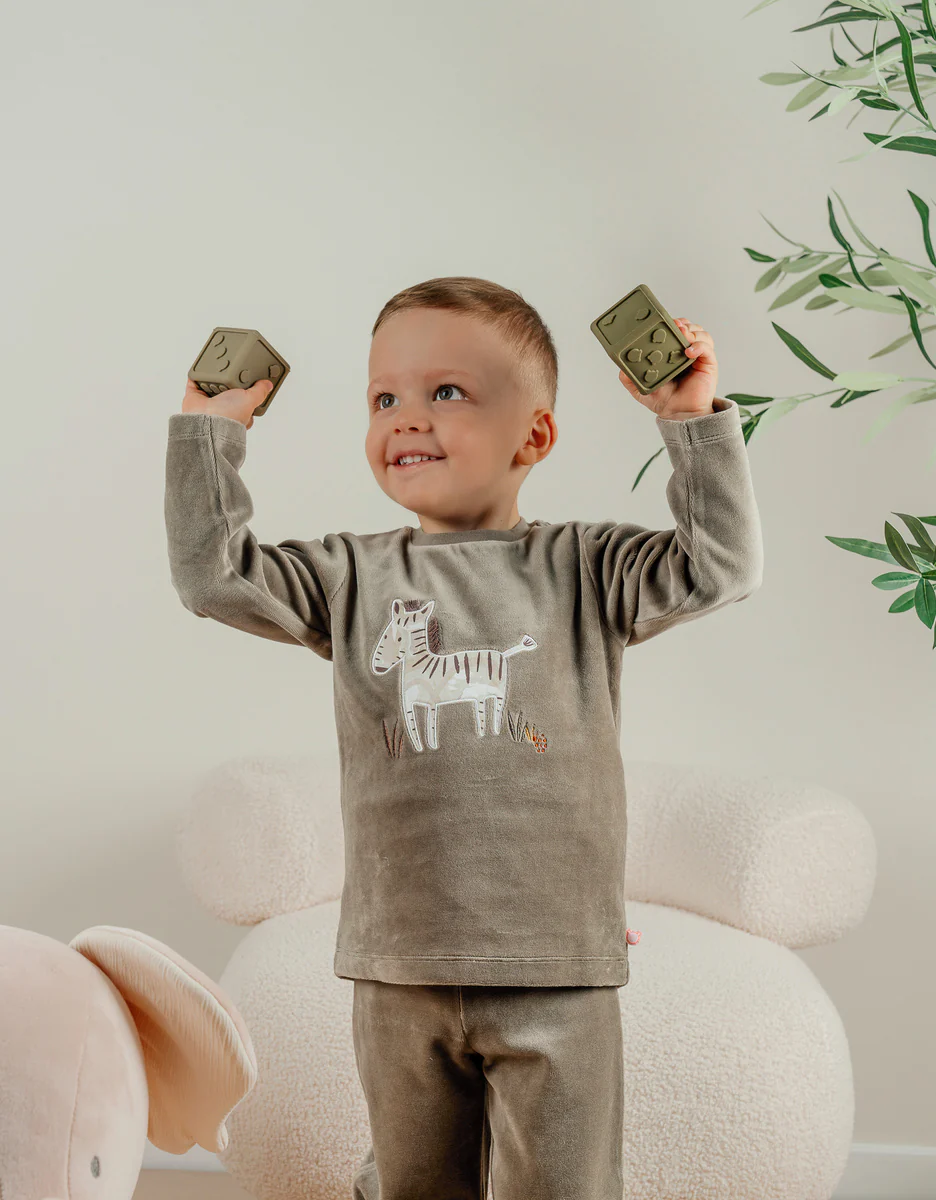 Pyjama 2 pièces en velours kaki avec broderie zèbre
