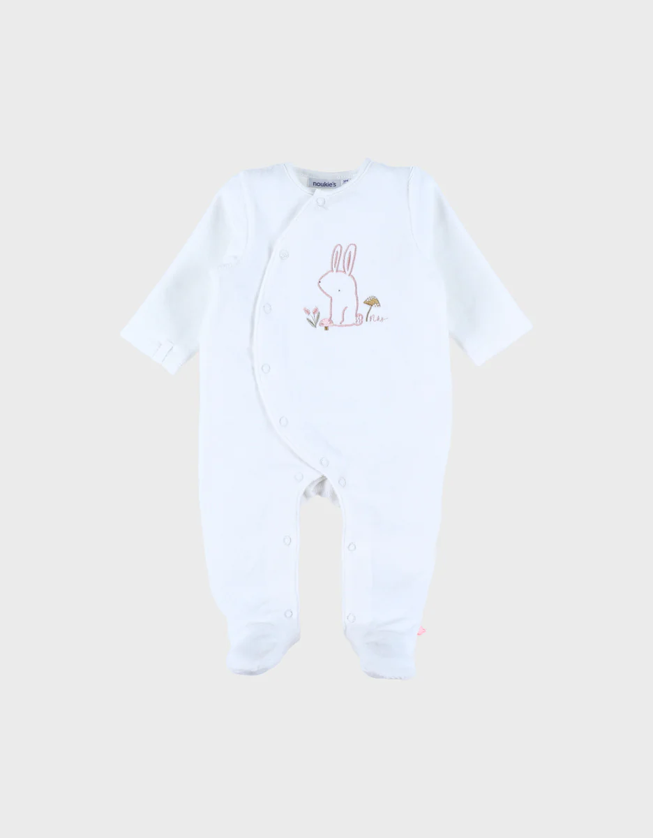 Pyjama 2 pièces en velours beige avec broderie lapin