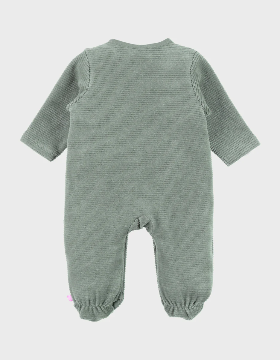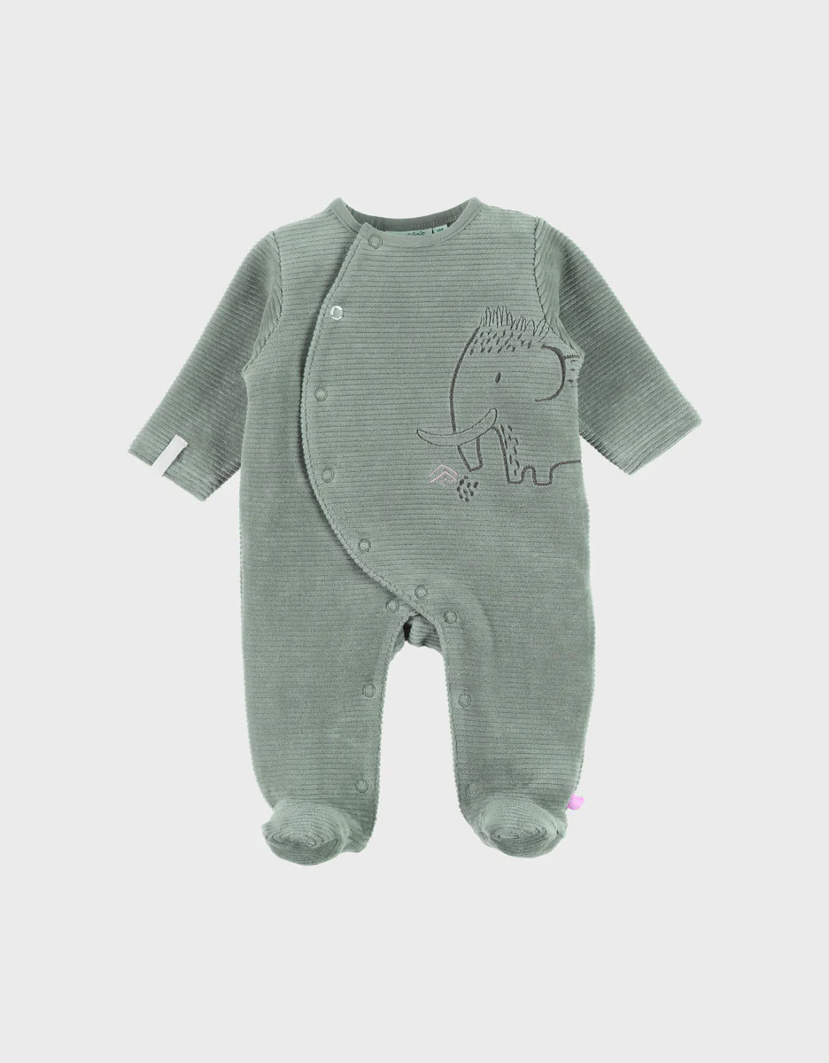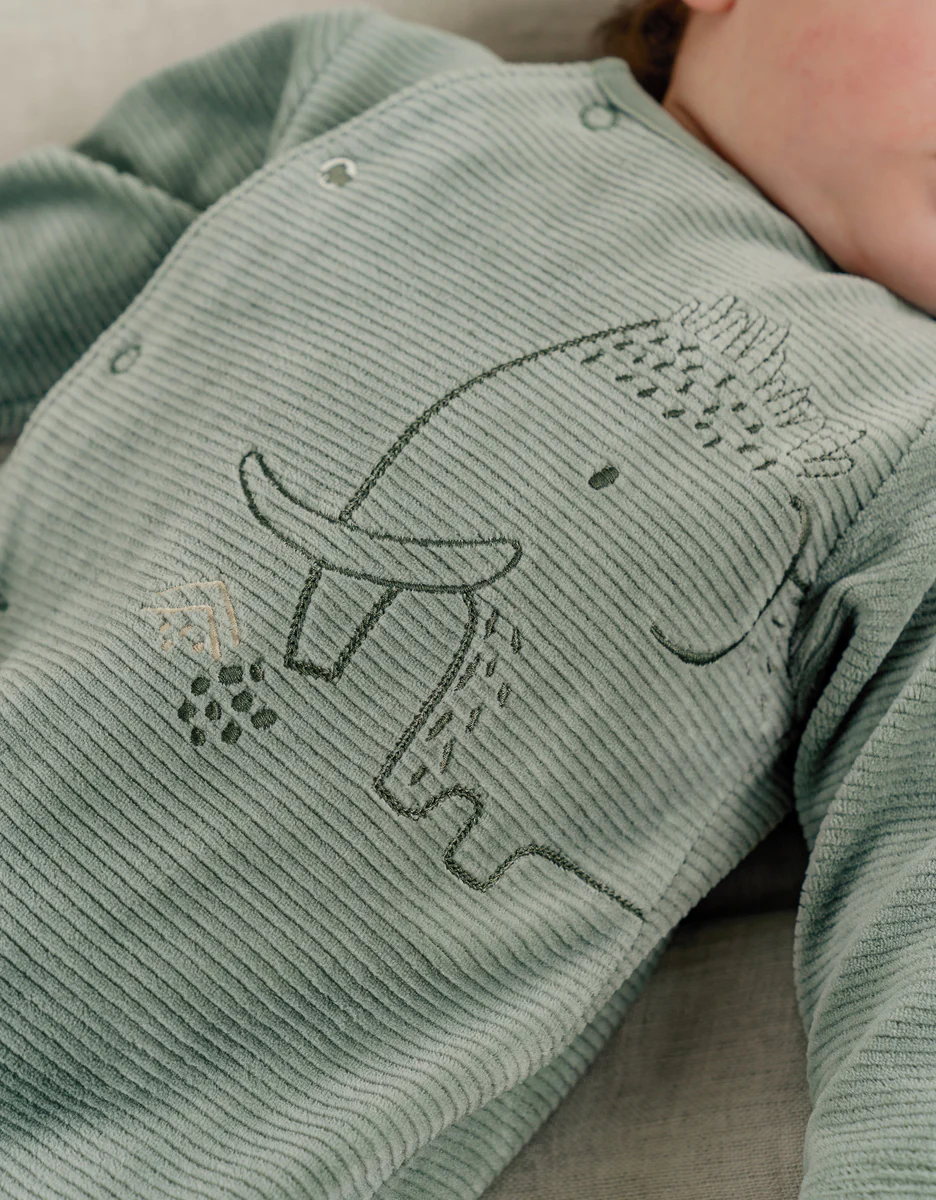 Le pyjama dors-bien est soigneusement confectionné avec un velours côtelé, une application toute douce brodée d’un éléphant.