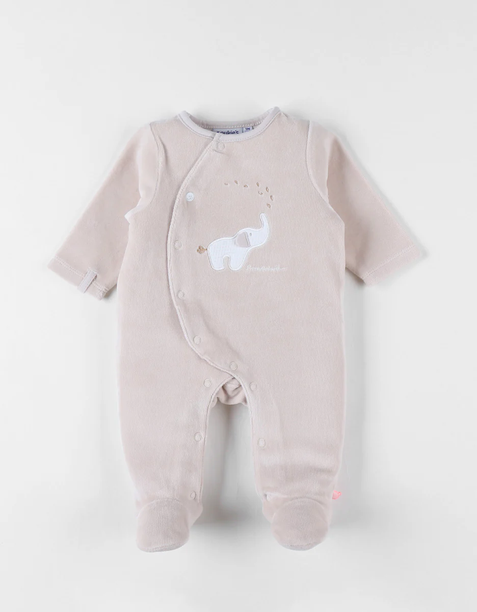 Pyjama 2 pièces en velours beige avec broderie lapin