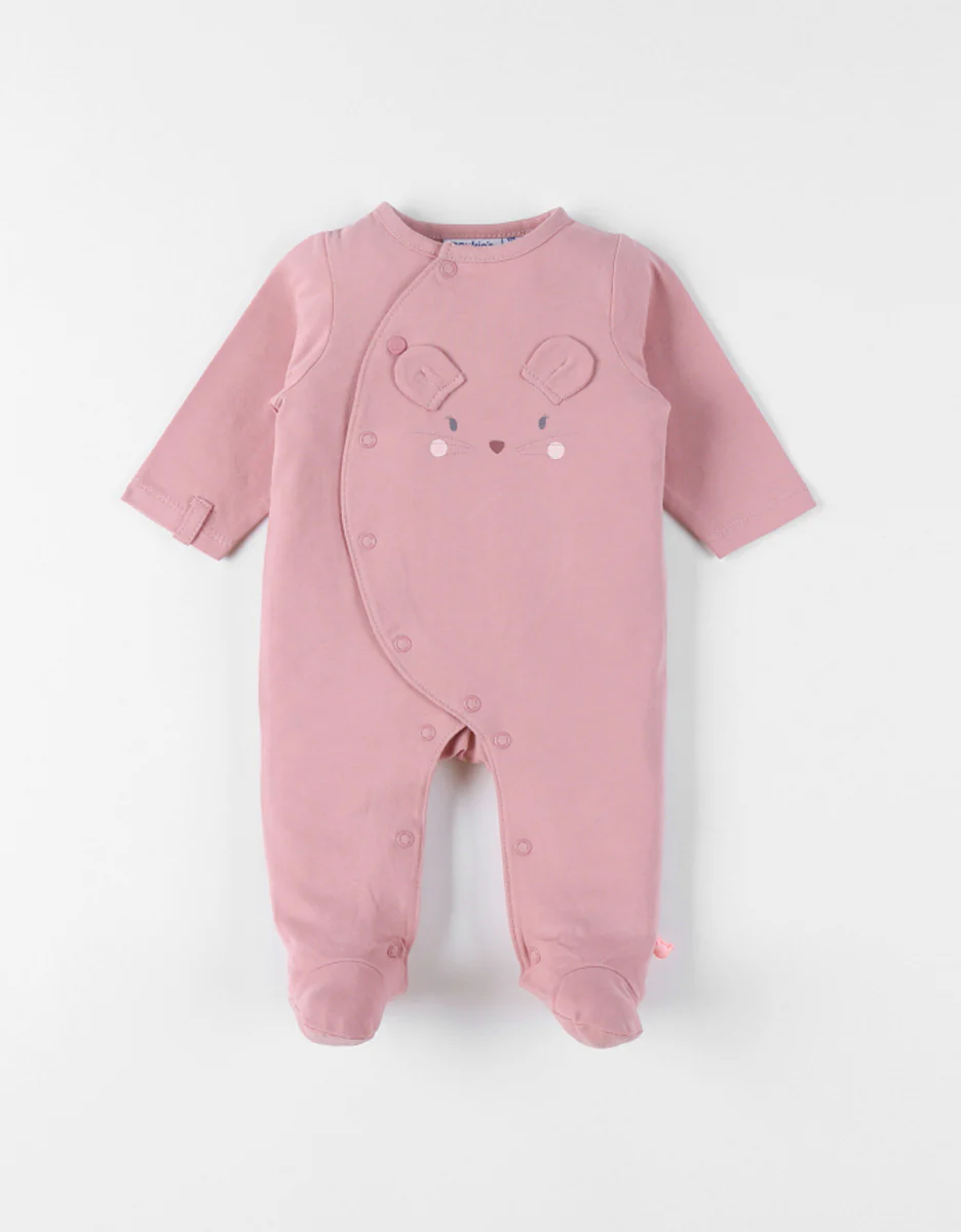 Ce pyjama en jersey de coton est tout simplement adorable, avec les oreilles en relief de Mademoiselle Souris et un cœur imprimé sur les fesses ! C’est le bonheur assuré pour les petites princesses ! Avantages : Respirabilité: Le jersey, un tissu respirant, contribue à maintenir la température corporelle de bébé stable pendant la nuit. Cela lui permet de rester confortable même lors de nuits plus chaudes ou pendant les saisons intermédiaires. Ouverture par l’avant: Les boutons pression situés à l’avant du pyjama évitent de devoir retourner bébé pour fermer le pyjama, ce qui rend le processus simple pour les parents. Gousset à l’entrejambe: La présence d’un gousset à l’entrejambe assure une liberté de mouvement maximale à bébé tout en maintenant le pyjama bien en place. Élastique aux chevilles: Les élastiques aux chevilles assurent que les pieds de bébé restent bien en place dans le pyjama, évitant ainsi « l’effet grenouille ». Anti-dérapants dès la taille 9M: Pour les petits qui commencent à découvrir la marche, des motifs anti-dérapants sont présents dès la taille 9 mois, offrant une meilleure adhérence et sécurité. Attache doudou: Une attache doudou sur la manche permet à bébé de garder son doudou préféré à portée de main, réduisant ainsi le risque de perte ou d’égarement.