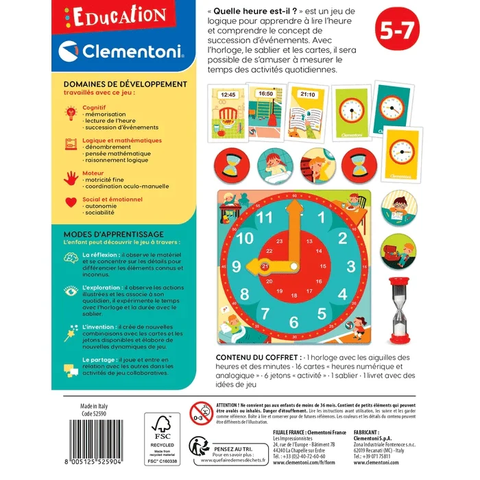 Descriptif du jeu éducatif pour apprendre à lire l’heure Un jeu éducatif et intelligent pour apprendre à lire l’heure tout en s’amusant. Une grande horloge, de nombreuses cartes illustrées pour comprendre le concept de temps et apprendre à lire l’heure de manière facile et amusante. Avec les 14 cartes qui illustrent différents horaires en forme […]
