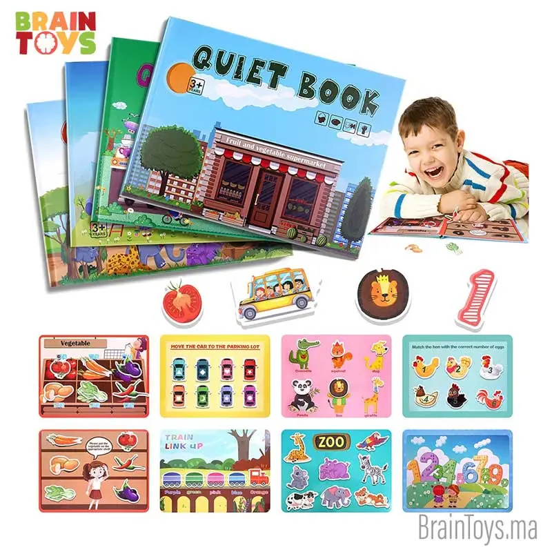 Apprentissage préscolaire de jouets intégré avec la méthode d’éducation Montessori, c’est un grand jouet Montessori, qui peut faire apprendre aux enfants des livres d’enseignement précoce qui sont occupés pendant plus de 30 minutes à travers des jeux. Aide à développer les compétences cognitives, motrices fines, linguistiques et de résolution de problèmes, la coordination œil-main.