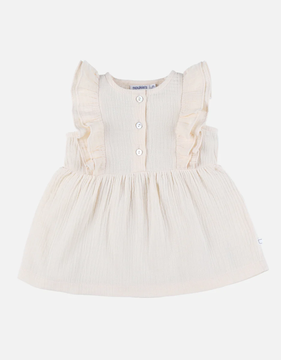 Une ravissante robe en mousseline de coton, agrémentée de doubles volants aux manches et de charmants boutons en nacre. Elle présente une découpe à la taille, toujours aussi pratique. Très féminine et parfaite pour les journées chaudes, elle peut également être assortie d’un joli cardigan pour les soirées plus fraîches. Avantages : Légèreté : Fabriquée en mousseline de coton de haute qualité, cette robe est légère et respirante, idéale pour les journées chaudes.