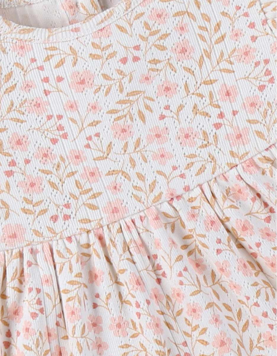 Une ravissante robe ornée d’un motif floral romantique, confectionnée en maille pointelle. Pour un confort optimal, de délicats boutons en nacre facilitent l’ouverture dans le dos. Les petites filles vont l’adorer ! Avantages : Praticité : Ouverture totale dans le dos jusqu’à 18 mois, puis demi-ouverture de 2 à 4 ans. Légèreté : Fabriquée en maille pointelle de coton de haute qualité, cette robe est légère et respirante, idéale pour les journées chaudes.