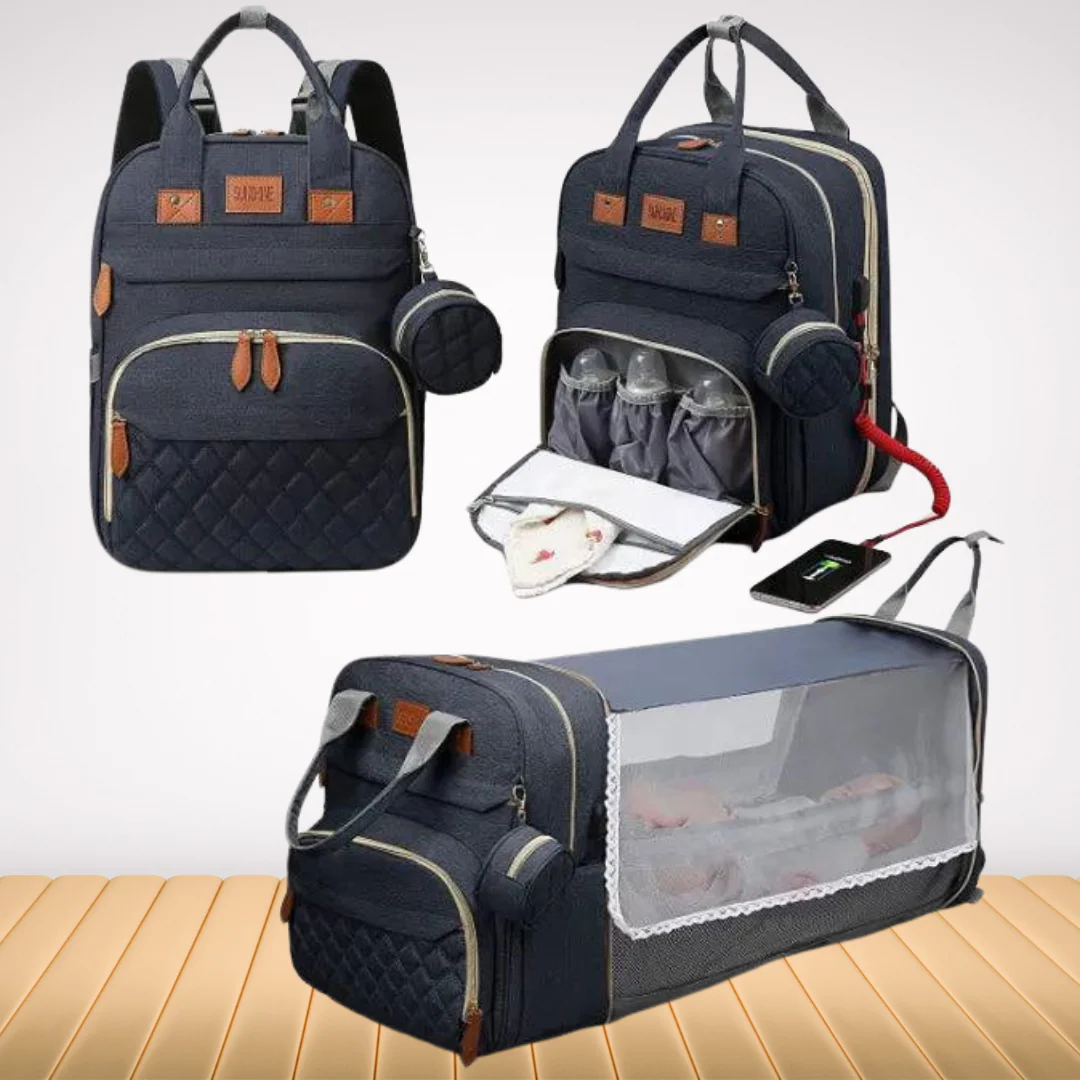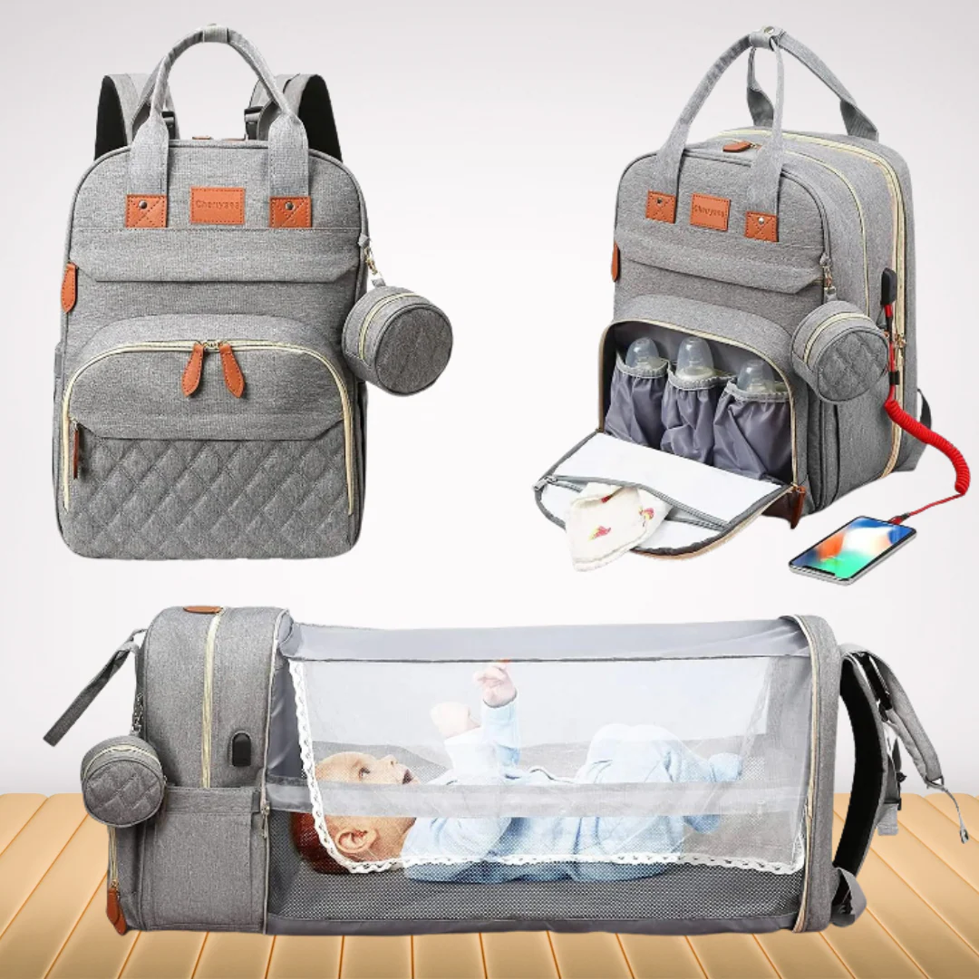 Grâce à sa station de change intégrée, notre sac à langer lit moderne vous permet de changer votre enfant où que vous soyez.