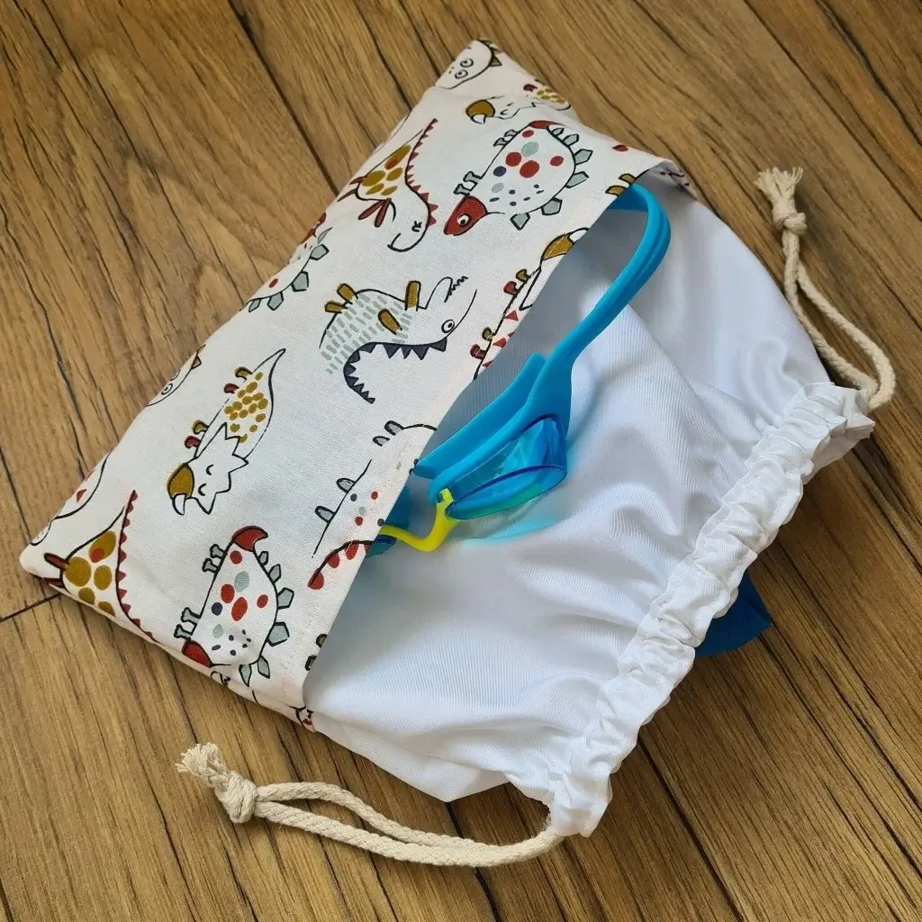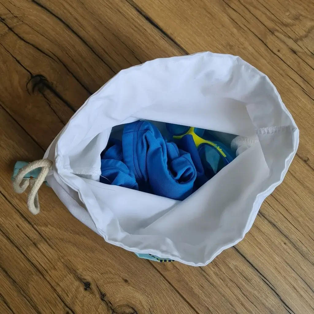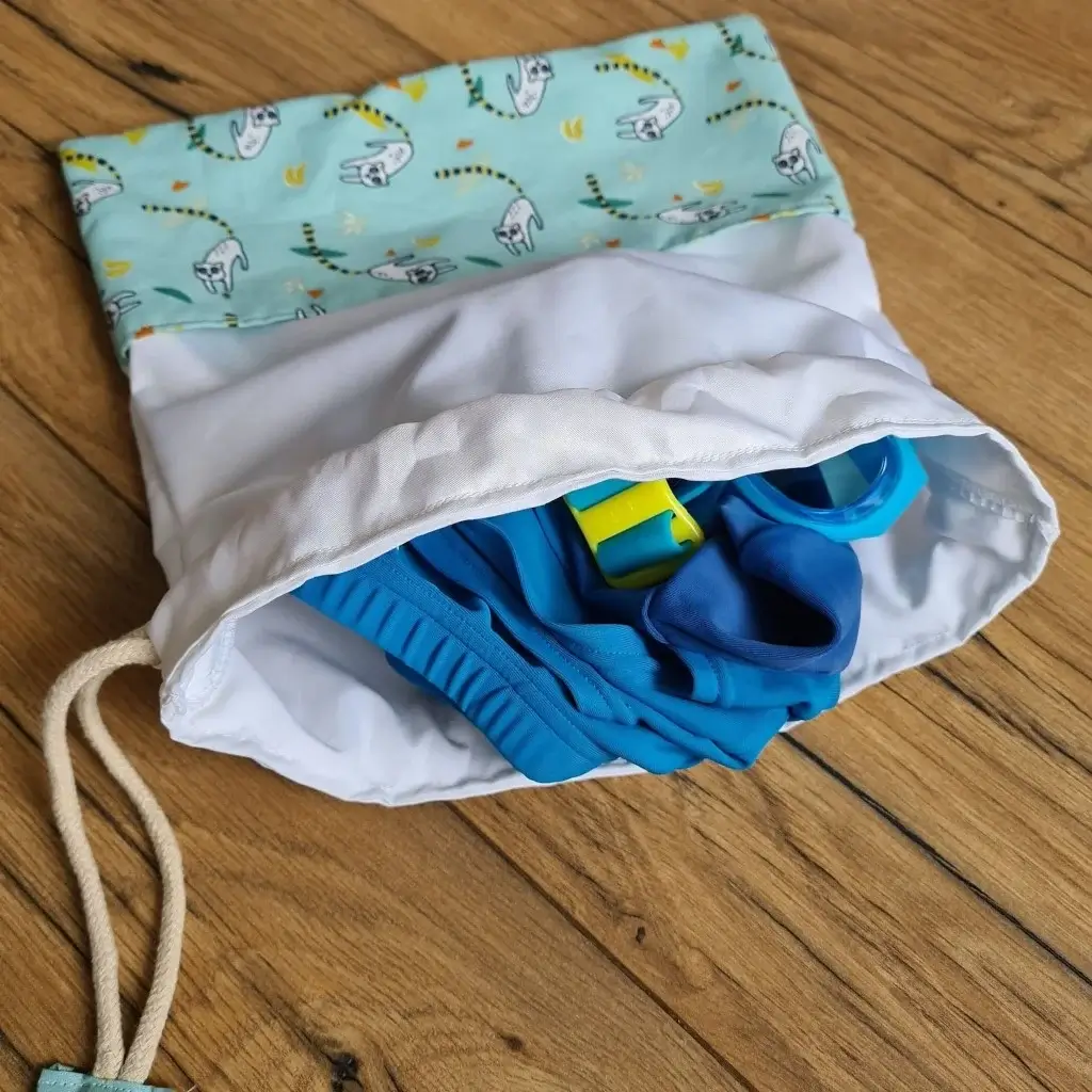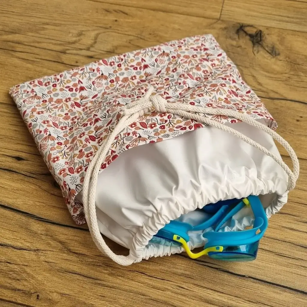 Sac piscine imperméable format pochon avec tissu à motif au choix