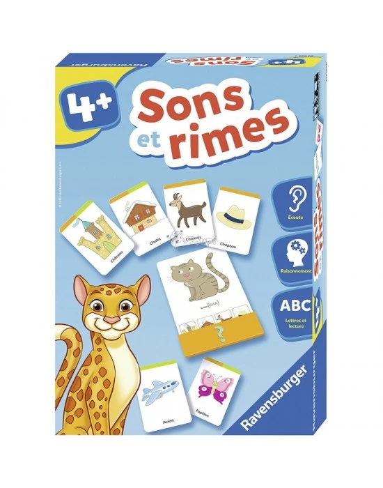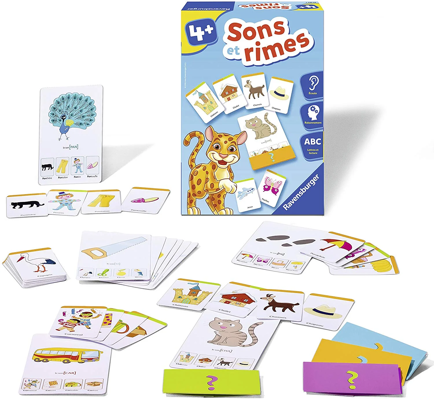 Le jeu Sons et Rimes de Ravensburger est un outil ludique et pédagogique conçu pour les enfants dès 4 ans. Il favorise le développement de la conscience phonologique, une compétence clé pour réussir l’apprentissage de la lecture et de l’écriture.