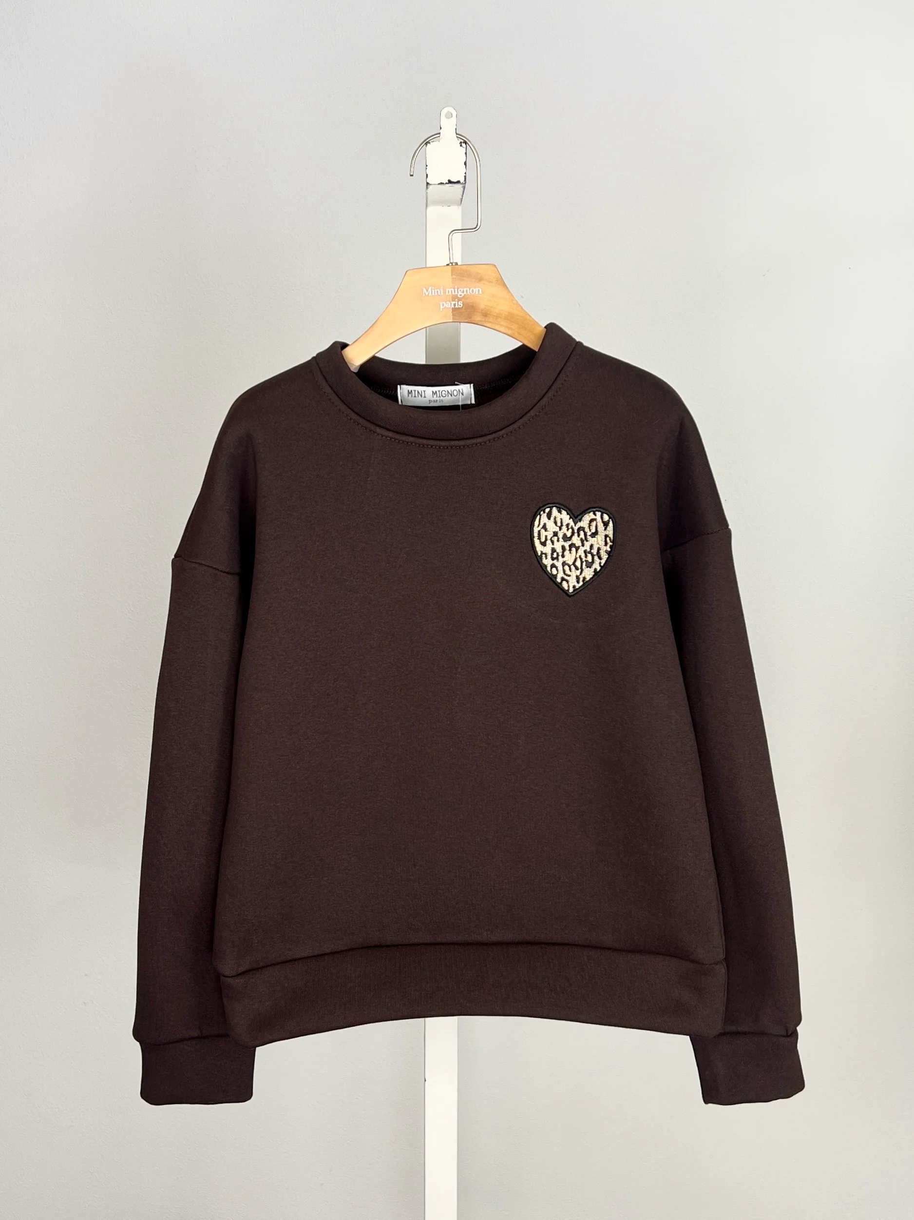 Sweat épais avec cœur léopard 65% Coton, 35 % Polyester