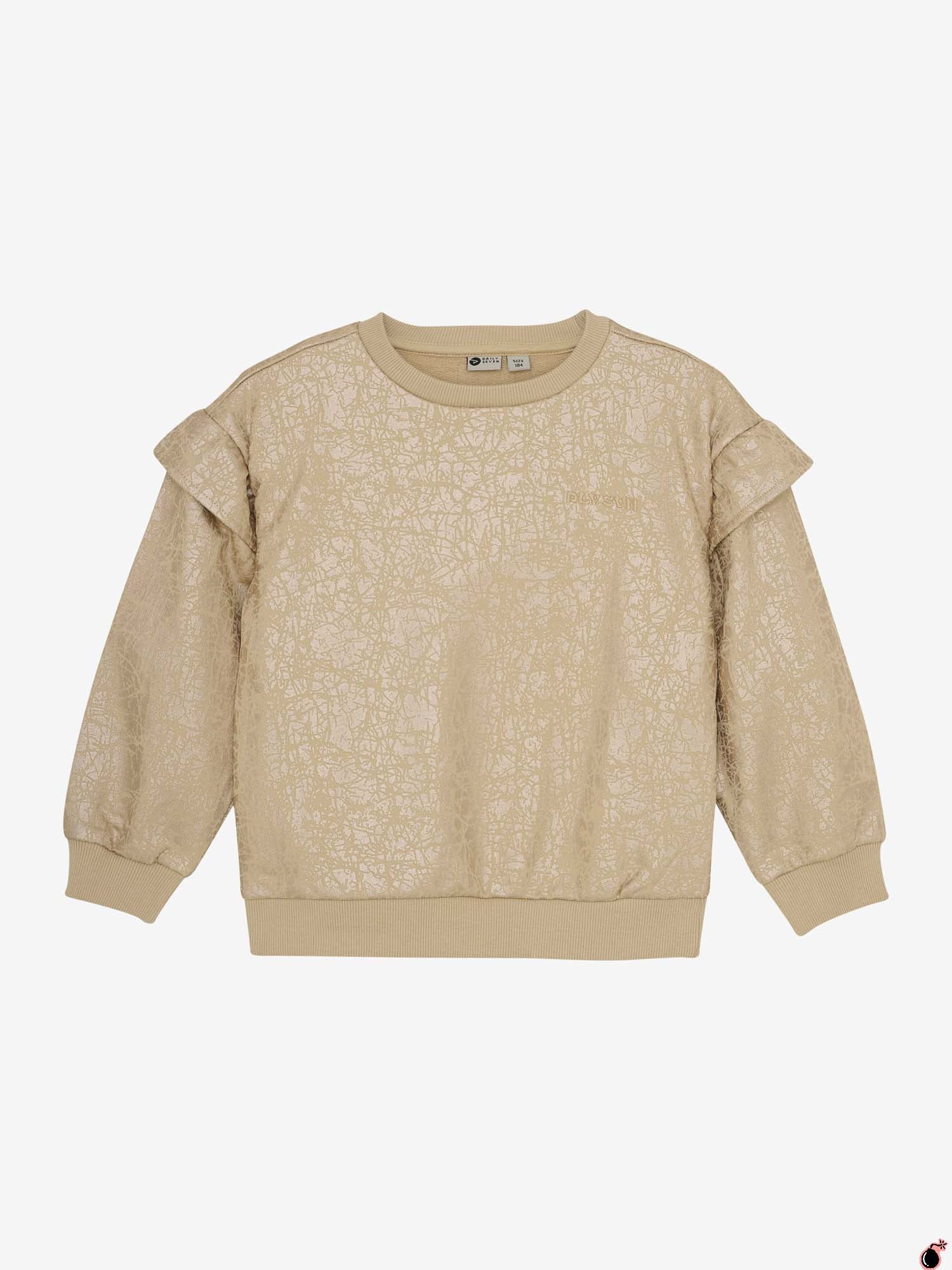 Sweat-shirt tendance de Daily7Kids. Ce sweat-shirt arbore un imprimé craquelé tendance sur toute la surface et un petit logo brodé sur la poitrine. Un joli volant sur la manche lui confère un look tendance. Code article: 930219 Sable