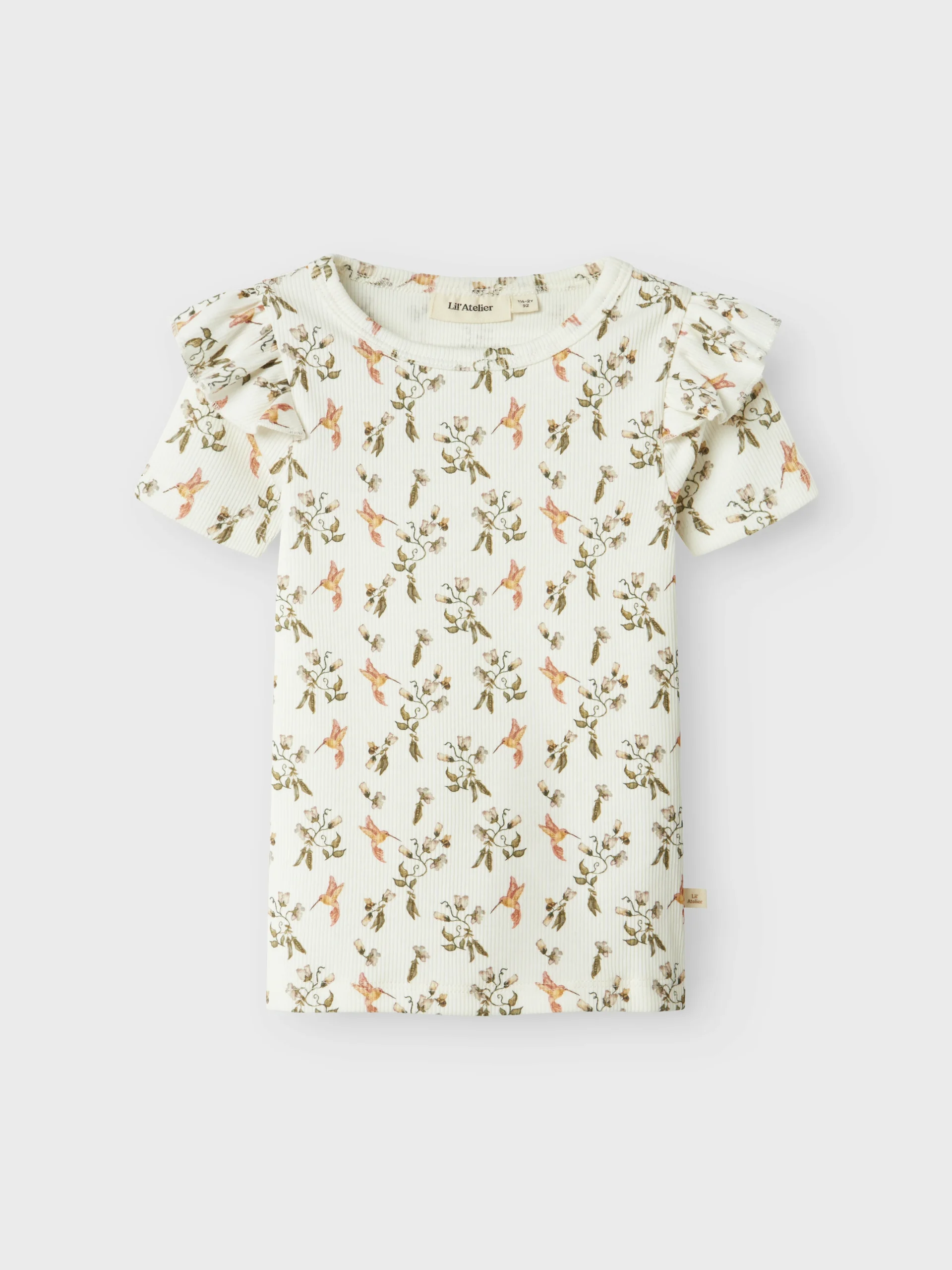 Composez la tenue parfaite pour votre enfant avec des styles quotidiens de qualité et créez un look confortable et tendance. Le jersey est un tissu léger et extensible dont la surface et l’intérieur doux offrent une sensation de confort et une liberté de mouvement. – Type d’article : Top – Col : Col rond – Manches : Manches courtes – Détails : Volants, Semelle intermédiaire en Eva – Type d’imprimés : Imprimé répété sur toute la surface du produit – Coupe : Slim Fit