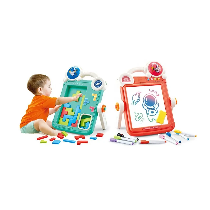 Découvrez un jouet multifonction pour enfants : un tableau de dessin double face combiné à un jeu de briques éducatif. Il permet à l’enfant de dessiner, écrire, créer des puzzles, jouer de la musique et écouter des histoires. Cet ensemble est livré avec 36 cartes de coloriage, 8 stylos de couleur et un effaceur.