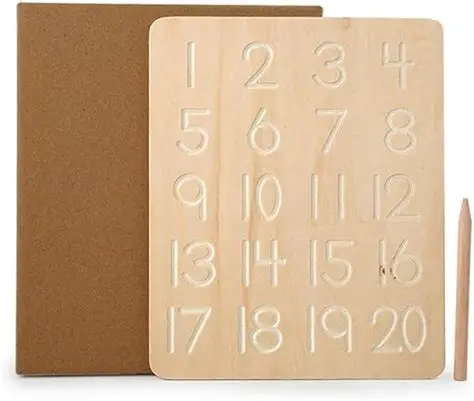 Un jeu éducatif simple et divertissant qui enseigne aux enfants comment écrire leurs premières tracés en utilisant un stylo en bois pour tracer les lettres et les chiffres.