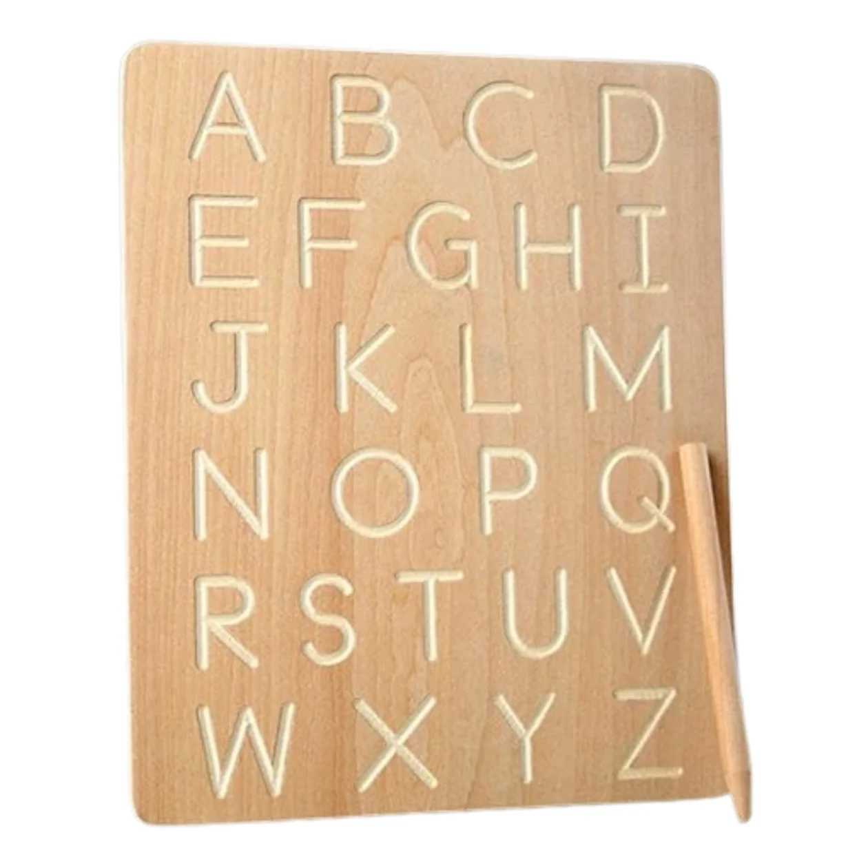 Tableau de traçage en bois pour tout-petits, plateau des chiffres et des lettres recto-verso avec stylo en bois