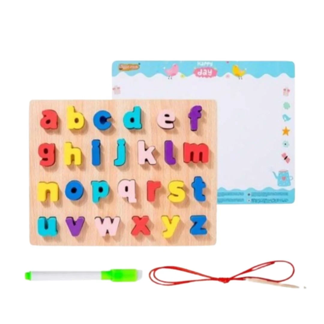 Le puzzle éducatif de l’alphabet majuscule est un jeu d’enfilage conçu pour aider les enfants à apprendre à reconnaître les 26 lettres majuscules de l’alphabet tout en développant leur motricité fine. Ce jeu d’apprentissage coloré est fabriqué en bois de haute qualité et peint avec des peintures écologiques non toxiques, garantissant la sécurité de votre enfant. C’est un cadeau éducatif idéal pour les enfants d’âge préscolaire.