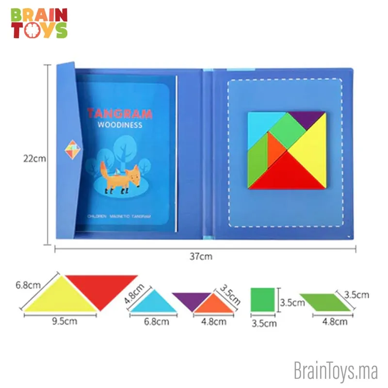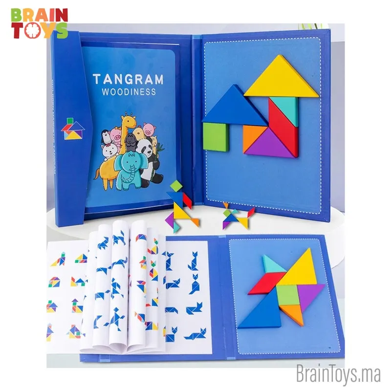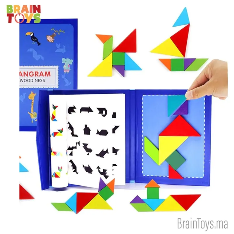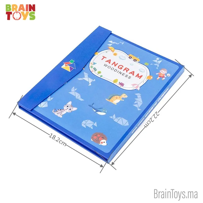 Puzzle magnétique Tangram à motif en bois, jouets de livre Puzzle Tangram pour garçons et filles d’à ge 3 ans et plus.