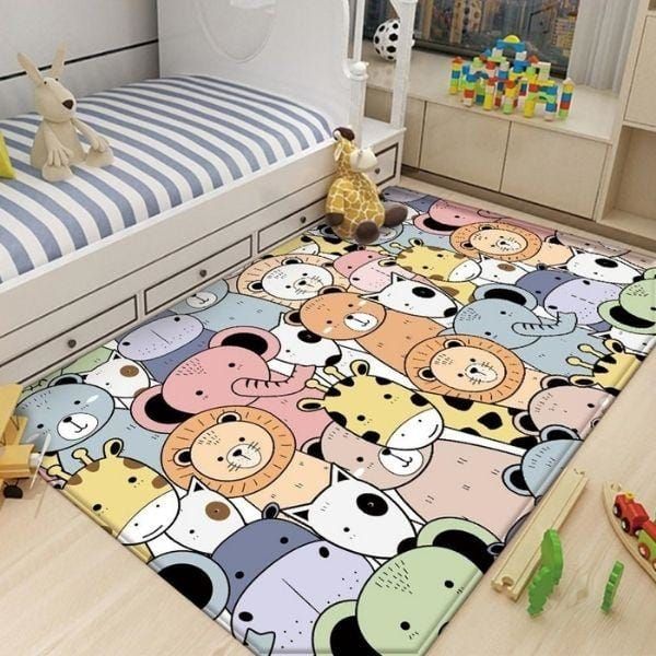 Ce tapis apporte une atmosphère chaleureuse et dynamique, invitant les petits à explorer un univers enfantin riche en couleurs et en découvertes. Il participe à la décoration de la chambre, insufflant une ambiance ludique qui réjouira les tout-petits et suscitera leur curiosité.