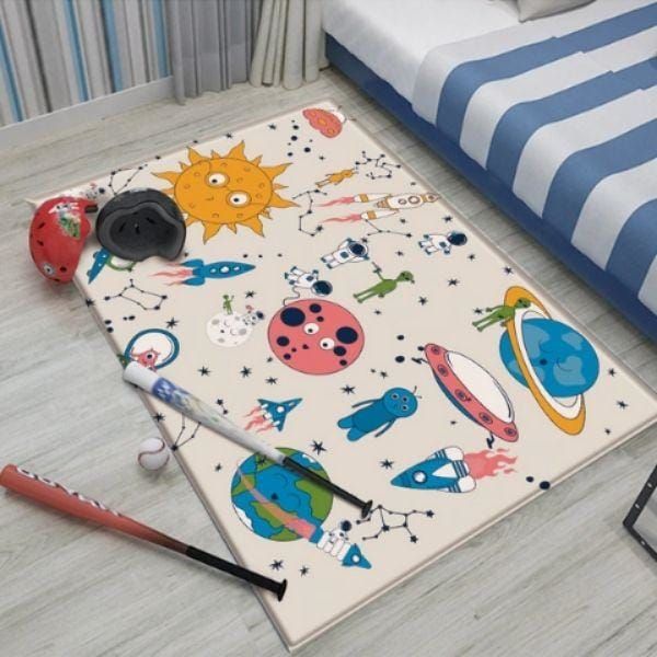 Avec son ambiance chaleureuse et ses motifs inspirés par l’espace, ce tapis s’intègre parfaitement dans les décorations intérieures modernes. Un choix d’élément décoratif pour éveiller la curiosité des enfants tout en apportant une note d’originalité à la chambre, il devient rapidement un incontournable pour toute salle de jeu.