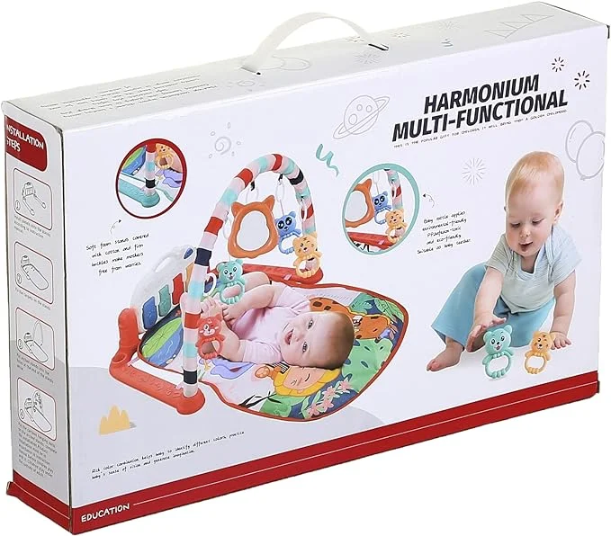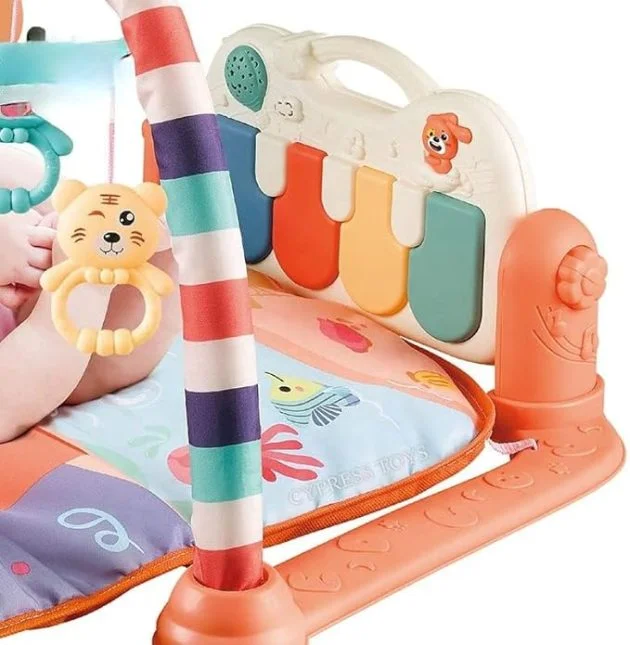 Description du jouet Le tapis d’éveil piano est un tapis interactifs animé de tous les côtés de jeux et couleurs qui stimulent l’intérêt et les sens du bébé ! Le piano émet un son lorsque le bébé le touche, accompagné de lumières et de musique douce et amusantes. En grandissant, ce tapis d’éveil évolue avec votre enfant et il peut y jouer assis. Le tapis d’éveil piano est un excellent moyen pour faire de la baby Gym ou Baby Fitness et exercer les petits muscles de bébé.