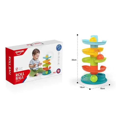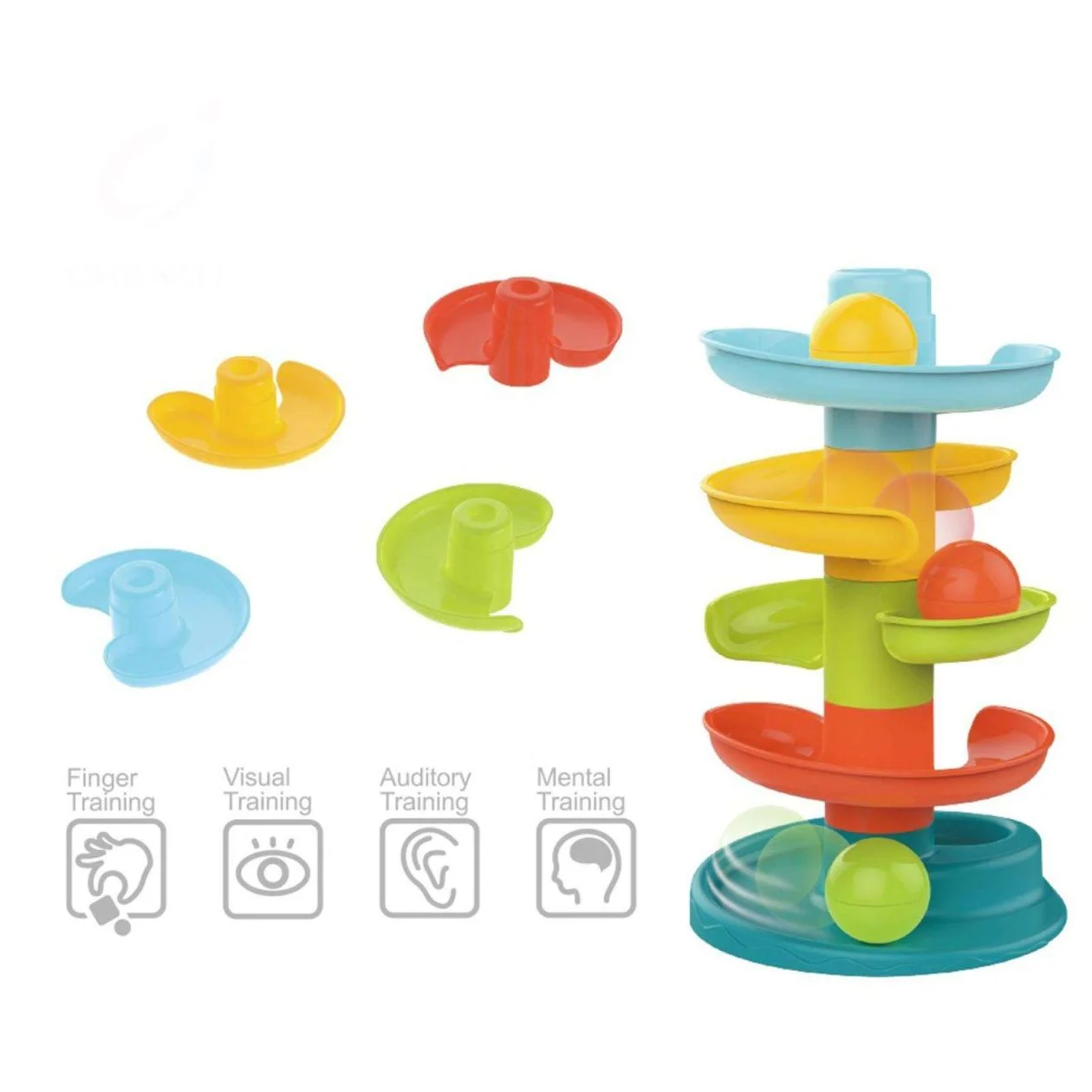 Ce jouet éducatif initie les enfants à discerner les couleurs, et pratiquer leur motricité fine en faisant glisser la balle dans le circuit.