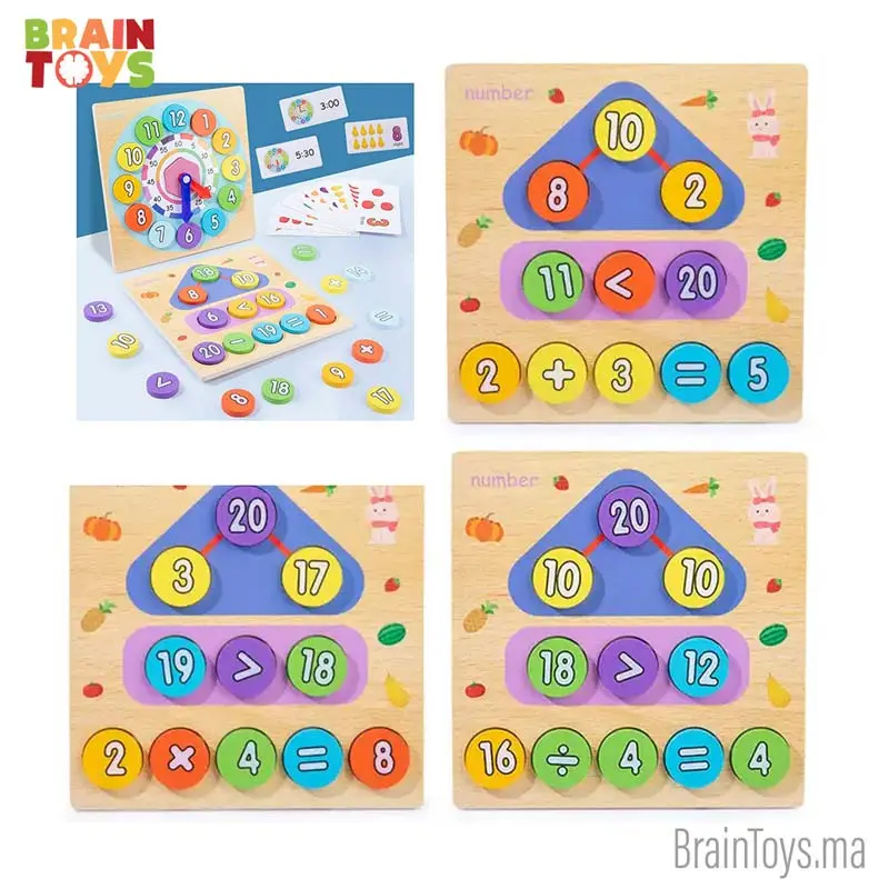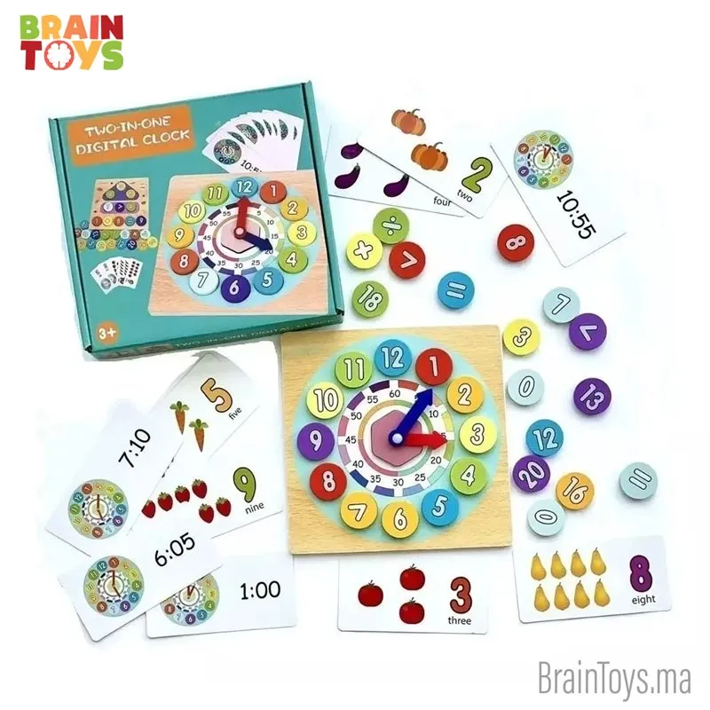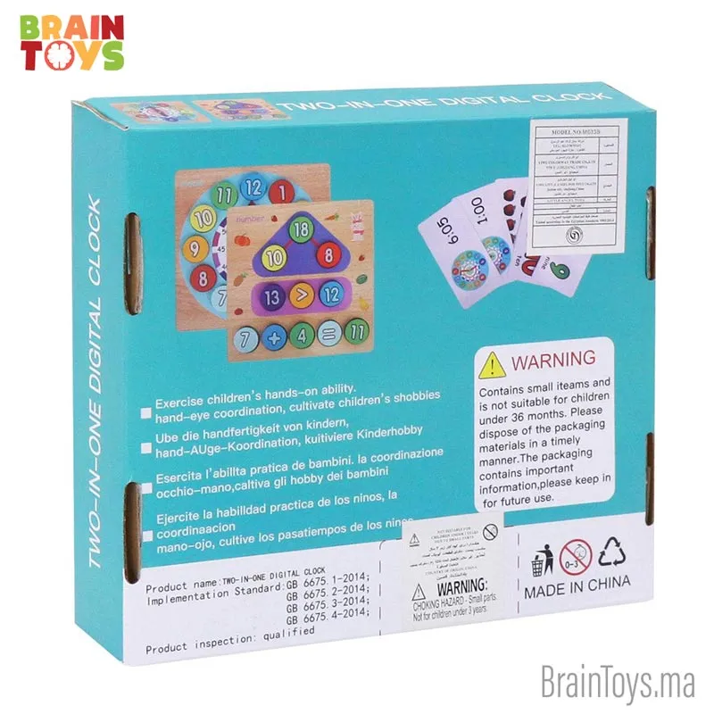 Le produit comprend une horloge numérique ainsi qu’un tableau opérationnel mathématique. Il aide l’enfant à renforcer ses compétences en mathématiques et apprendra à lire l’heure.