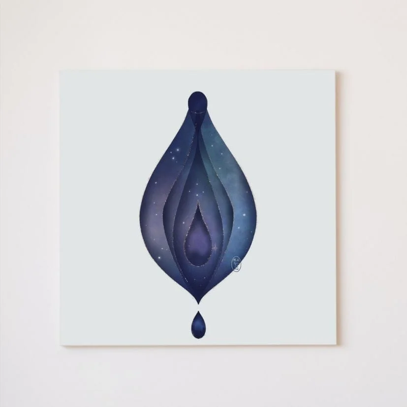 Yoni ✨ Impression sur toile 60 x 60 cm à texture fine, tendue sur un cadre en bois fabriqué à la main. Encres sans aucun solvant et résistantes aux UV.
