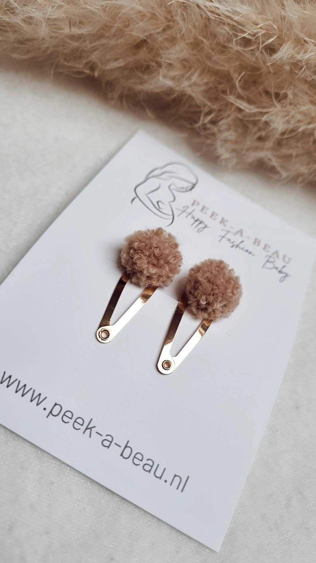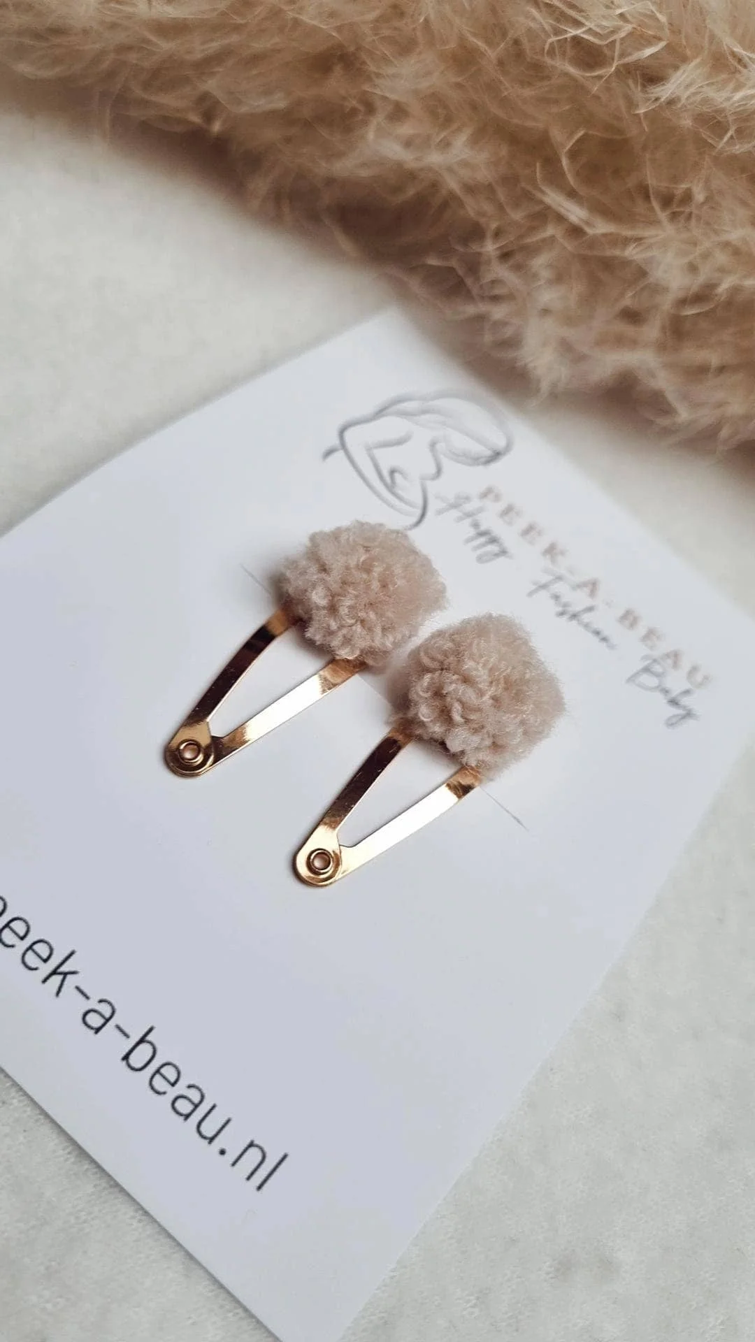 Ces jolies épingles à pompon sont parfaites pour les plus petites filles ! Cet ensemble se compose de 2 épingles dorées, attachées à 1 pompon.