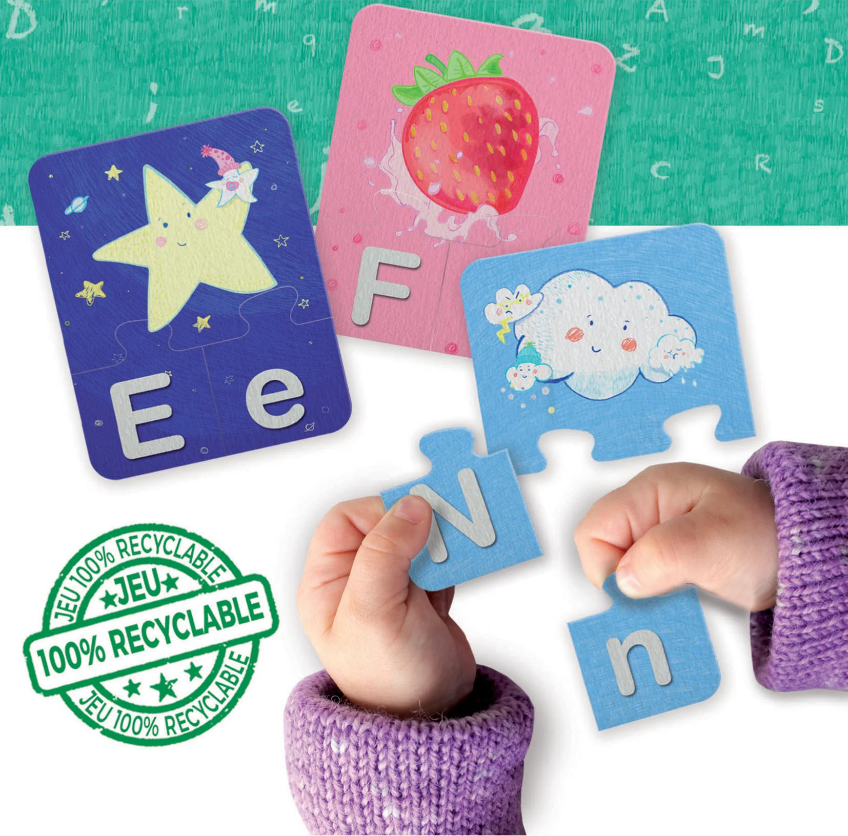 En emboîtant les différentes pièces entre elles, les plus petits découvriront chacune des lettres, les majuscules comme les minuscules.