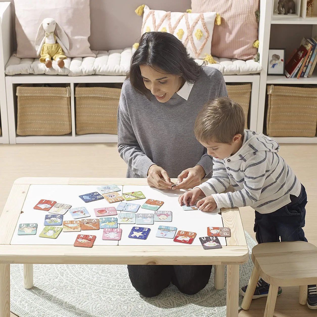 Avec cet amusant jeu d’association, les enfants pourront commencer à apprendre l’alphabet.